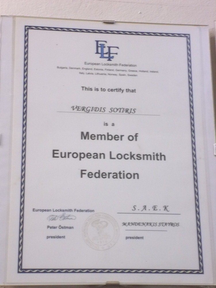 Είμαστε μέλη του ευρωπαικού συλλόγου κλειδαράδων