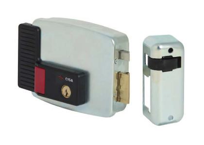 Ηλεκτρική κουτιαστή κλειδαριά CISA. Ανοίγει με ρεύμα από το θυροτηλέφωνο, από έξω με το κλειδί του κατόχου και από μέσα με το πάτημα του κόκκινου μπουτόν. Για την διαθεσιμότητα των προϊόντων να προηγείται τηλεφωνική επικοινωνία : 210 9511111